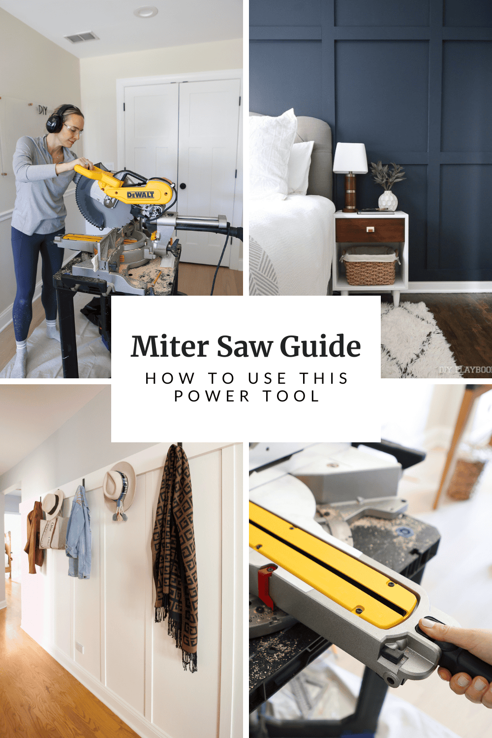 This is the most versatile option. It does everything a compound miter saw can do, but it also has a sliding action that allows you to cut wider boards. This is what I use now, and it’s especially helpful when working with larger pieces. I actually had to upgrade to this in a moment of panic during this board and batten project. My 10-inch miter saw couldn’t cut my thick wood, so I ran to the store and got a larger sliding one!