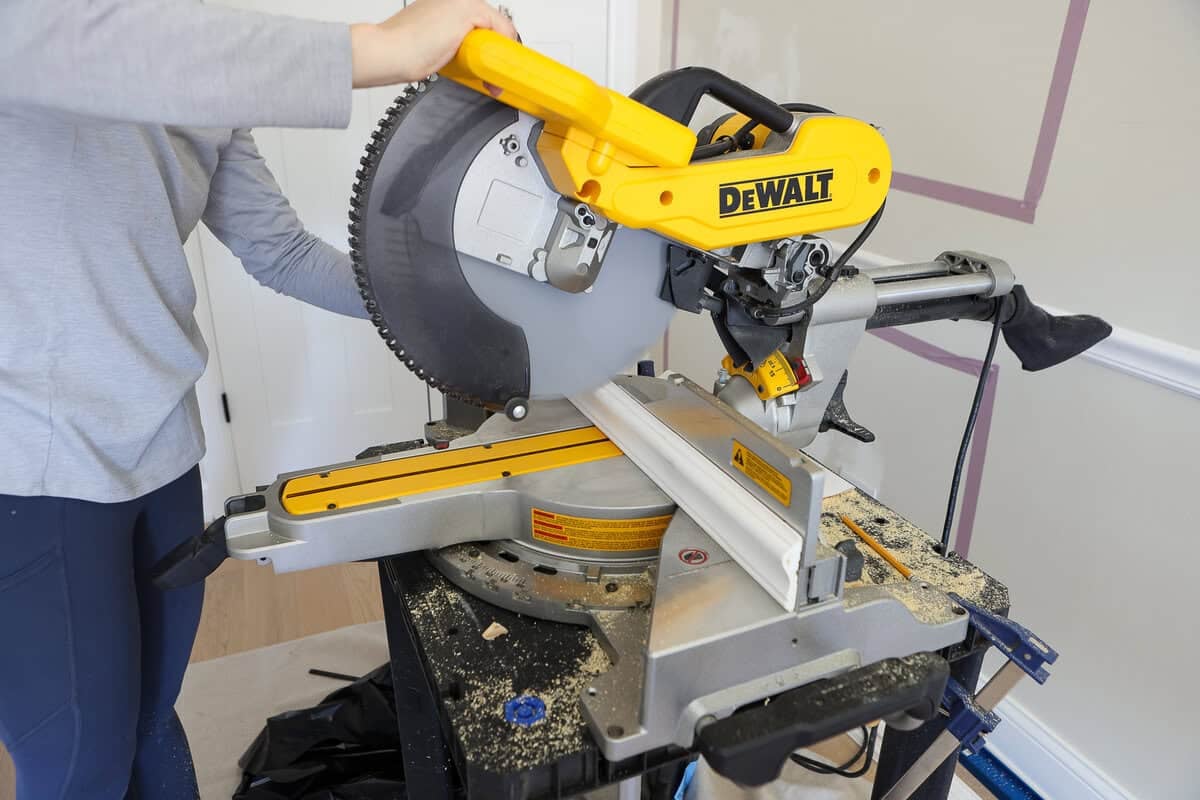 A miter saw is one of those tools that can be used to instantly make your home look more high-end, but I’ll be honest, it felt really intimidating to me when I first used it about 10 years ago. I remember closing my eyes and turning my head every time I made a cut. Do not do that! It felt loud and powerful, and I wasn’t confident using it in the beginning. But over time, it got easier, and now it’s one of the tools I use most.